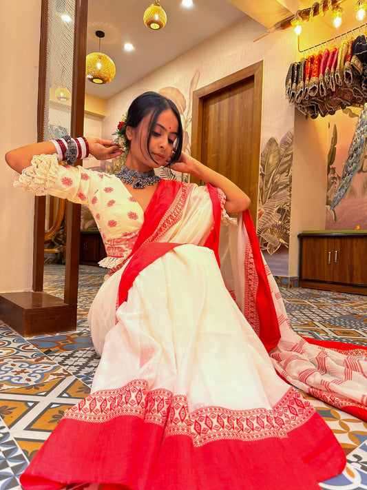 Red White Jamdani