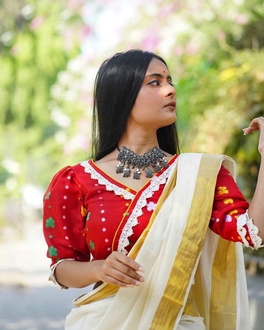 Red Rasm Puff Sleeves