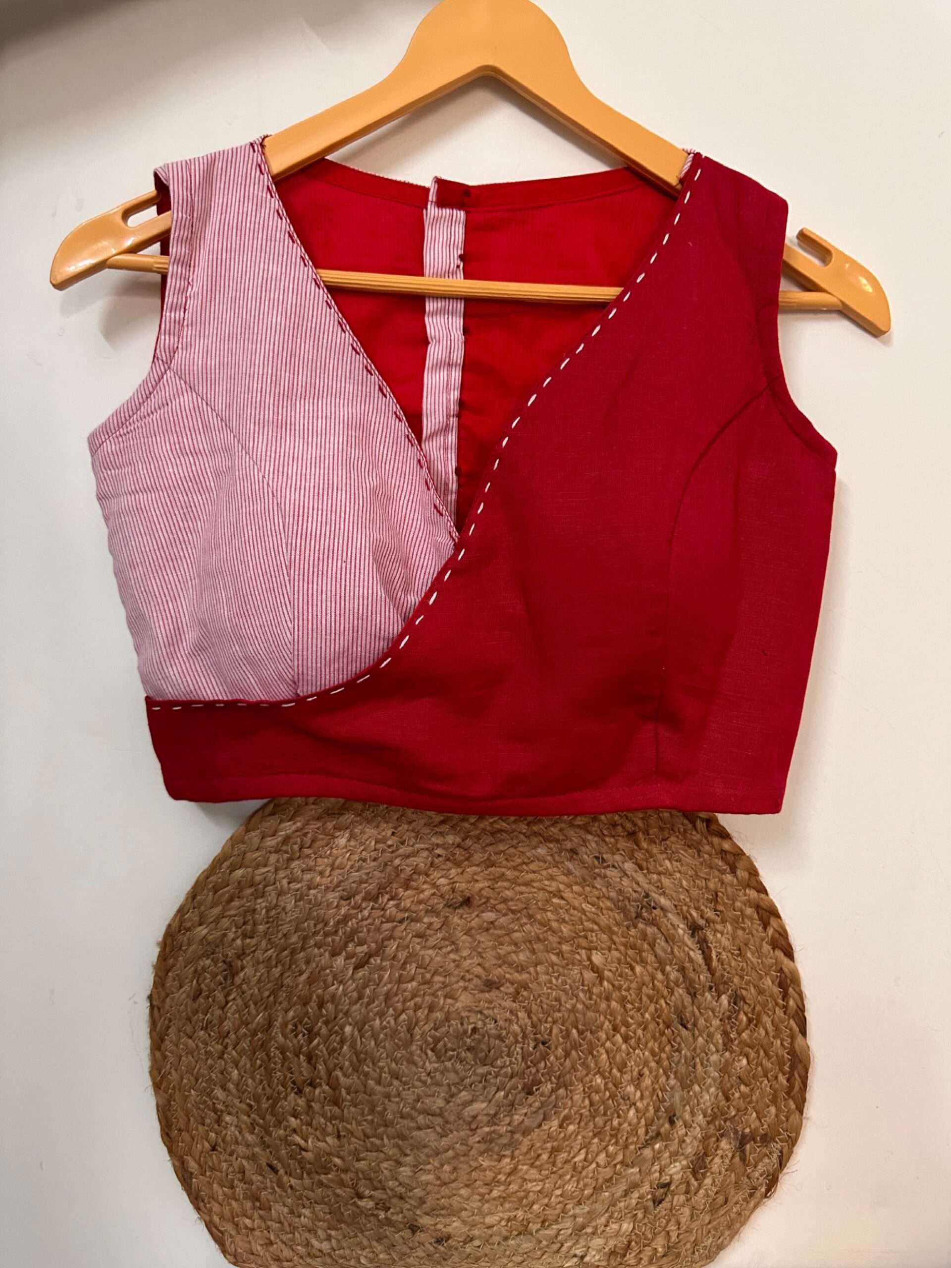 cotton red sleeveless blouse for women
