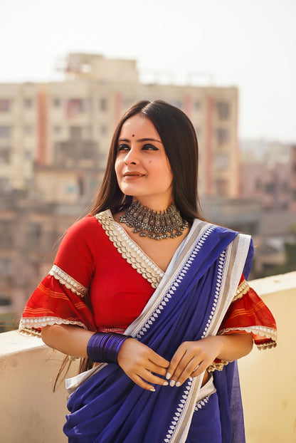 Red Cotton V-Neck Bell Sleeve Blouse